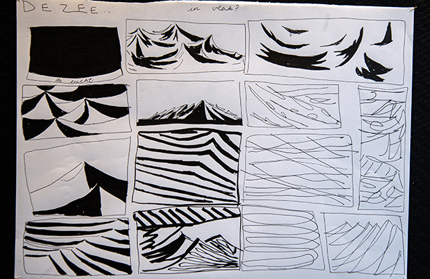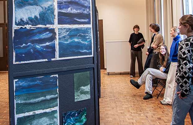 De leerlingen van het vierde jaar Architecturale en Beeldende Vorming en de derde graad Beeldende Vorming werkten rond het thema ‘de zee’ naar aanleiding van de fototentoonstelling van Stefaan Vanfleteren in het MSK in Gent. De derde graad deed een persoonlijk onderzoek naar kunstenaars die de zee als inspiratiebron gebruikten, om uiteindelijk te komen tot een persoonlijke verwerking van een zeelandschap. Het vierde jaar had een concretere opdracht en verwerkte een foto van de zee in een bepaalde techniek waarbij verf, houtskool en tekenkrijt werden gecombineerd.