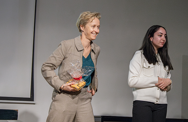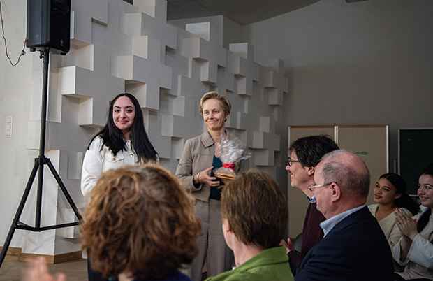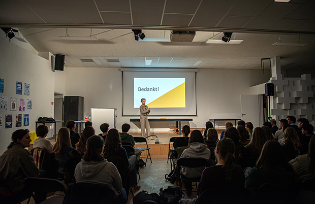 De mini-onderneming Wegwijs van 6 Economie-Wiskunde ontwikkelde het Mobiliteitsspel ter ondersteuning bij de voorbereiding van het theoretische rij-examen en heeft daarmee de Next Gen On Stage pitchwedstrijd gewonnen. Ze vroegen minister van mobiliteit Annick De Ridder om de presentatie van het Mobiliteitsspel op school bij te wonen en ze zei “Ja”. De minister was te gast op Pius X en zag hoe de leerlingen als volleerde ondernemers hun spel presenteerden en commercieel aanprezen. Naast enkele scholen die met het spel aan de slag willen, ligt het nu ook tussen andere spellen in de rekken van de filialen van De Banier.